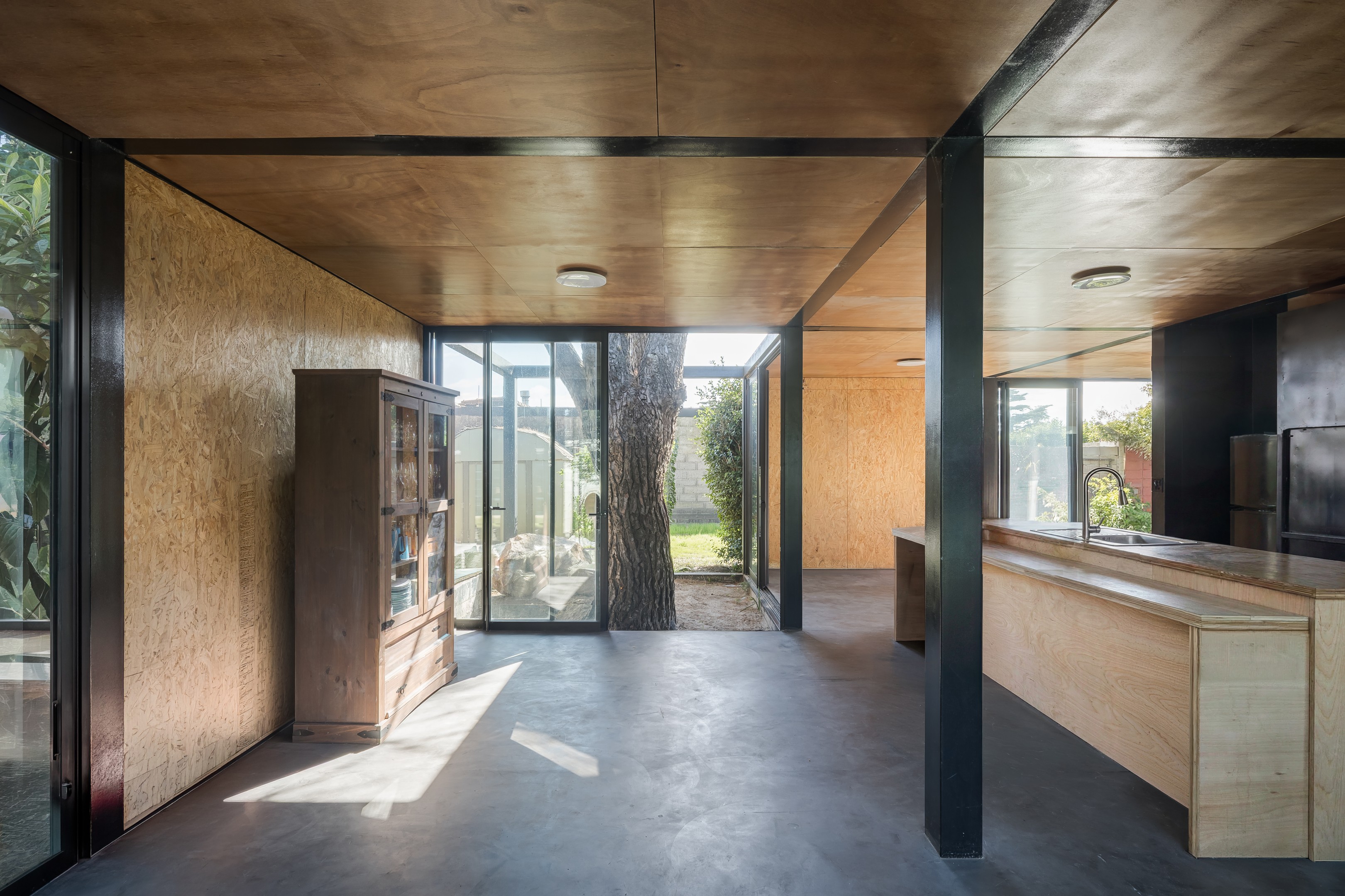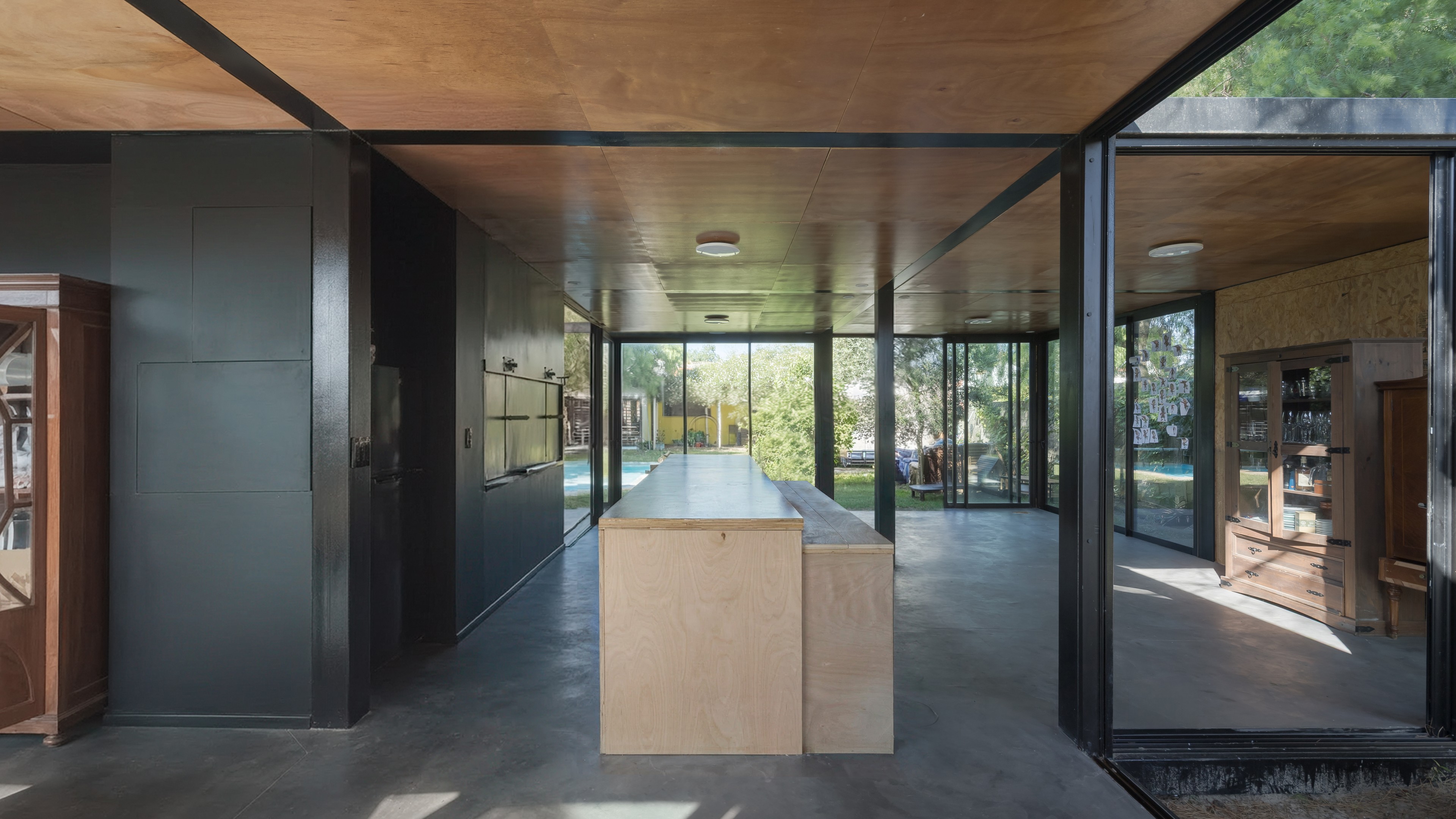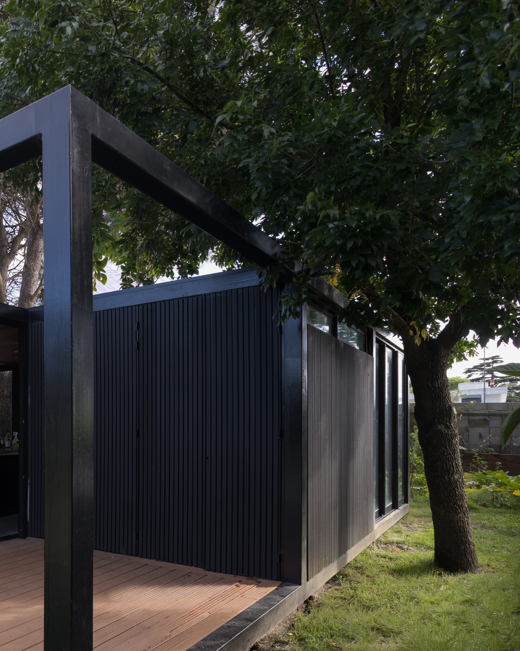 Pabellon Multipropósito se ubica en Ciudad de la Costa, Canelones. Se trata de la ampliación de una construcción existente en un terreno de generosas dimensiones. Los propietarios, buscando tener más espacio para poder realizar actividades de reunión con amigos y familiares, manifiestan sus intenciones de ampliar su casa hacia el fondo del terreno con un pabellón multi-propósito. El mismo no solo cuenta con área de parrillero y salón comedor sino que además puede transformarse rápidamente, en caso de requerirlo, en un apartamento para invitados o incluso ser en el futuro cercano un espacio propicio para que sus hijos, que van creciendo, puedan trasladarse paulatinamente a esta nueva área de la casa.